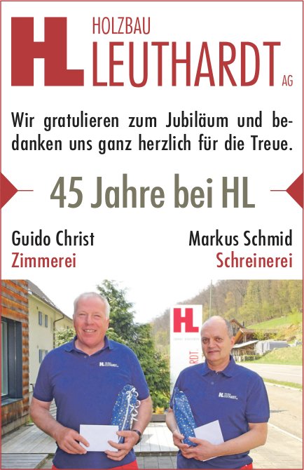 Holzbau Leuthardt AG, 45 Jahre bei HL: Guido Christ und Markus Schmid